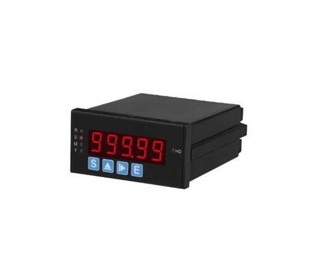 盤面式五位數速度/轉速表,提供0.1~5999.9的旋轉直徑與1~59999 P / R的通用輸入。 可自行設定的Pulse TTL , PNP , NPN模式,方便安裝及運用。 外觀尺寸設計依據德國標準化學會DIN (96x48mm)。 可依顧客需求之規格設計與製造。 顯示: 5 digits (99999) 0.56" H 紅色LED Accuracy: ±0.05% F.S 取樣時間: 1 sec. 輸入阻抗: ≧2MΩ 電源: AC 110V/220V 50/60Hz