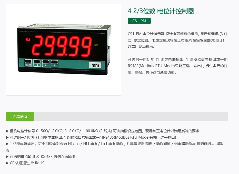 CS1- PM 4 2 /3 位数 电位计控制器